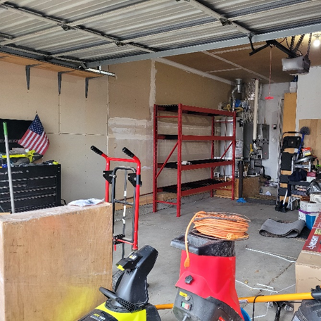 With a clean slate, we cleaned the floors (as best as one could in a garage) and started talking about how we envision the organization of the shelves. Hubby and I decided to make the bottom shelf on the first unit closest to the water heater, as shown here, our paint cans, stains, extra tiles, and chemicals should go there. The one up from that is dedicated to our son’s accumulation of stuff. The top 2 shelves we are still figuring it out right now.