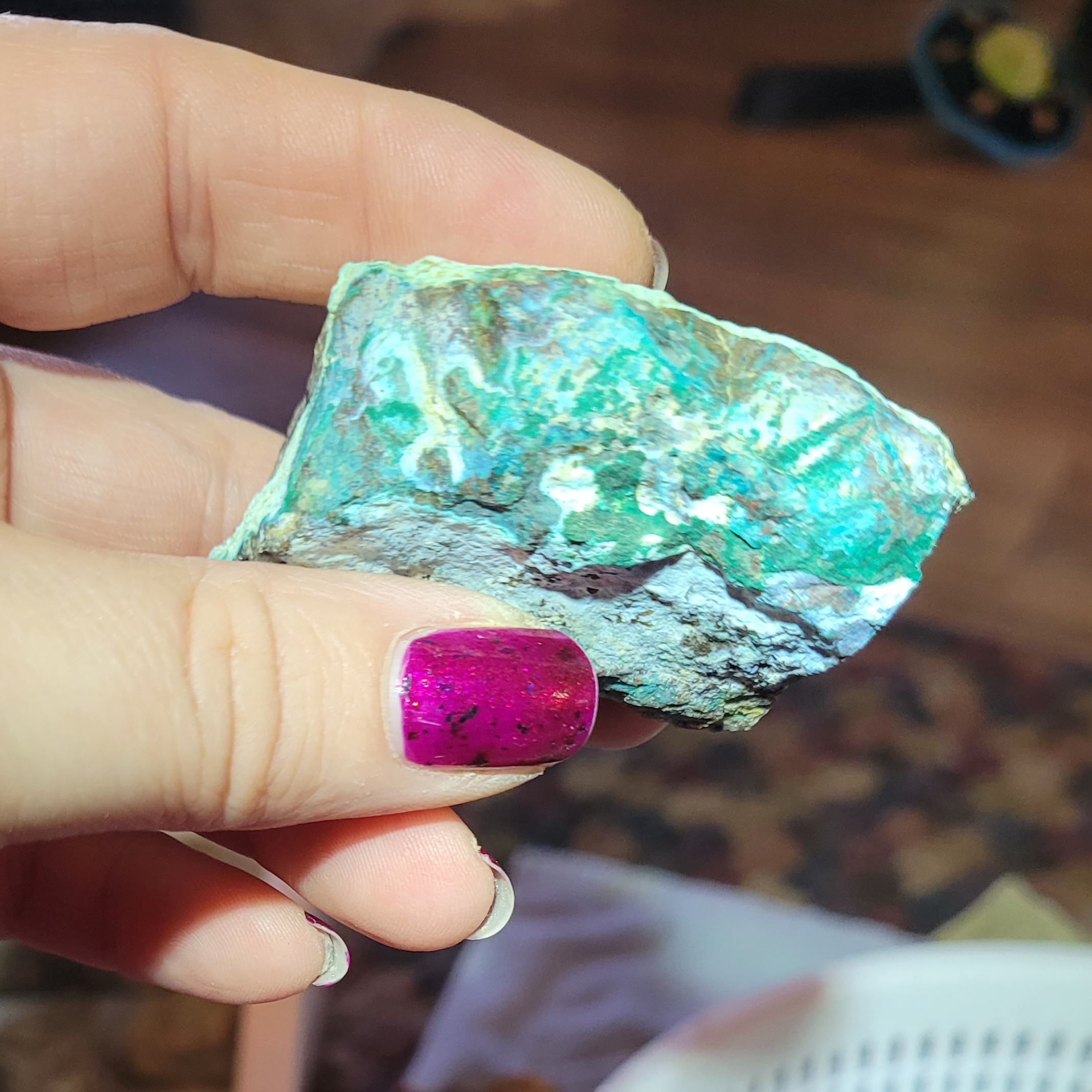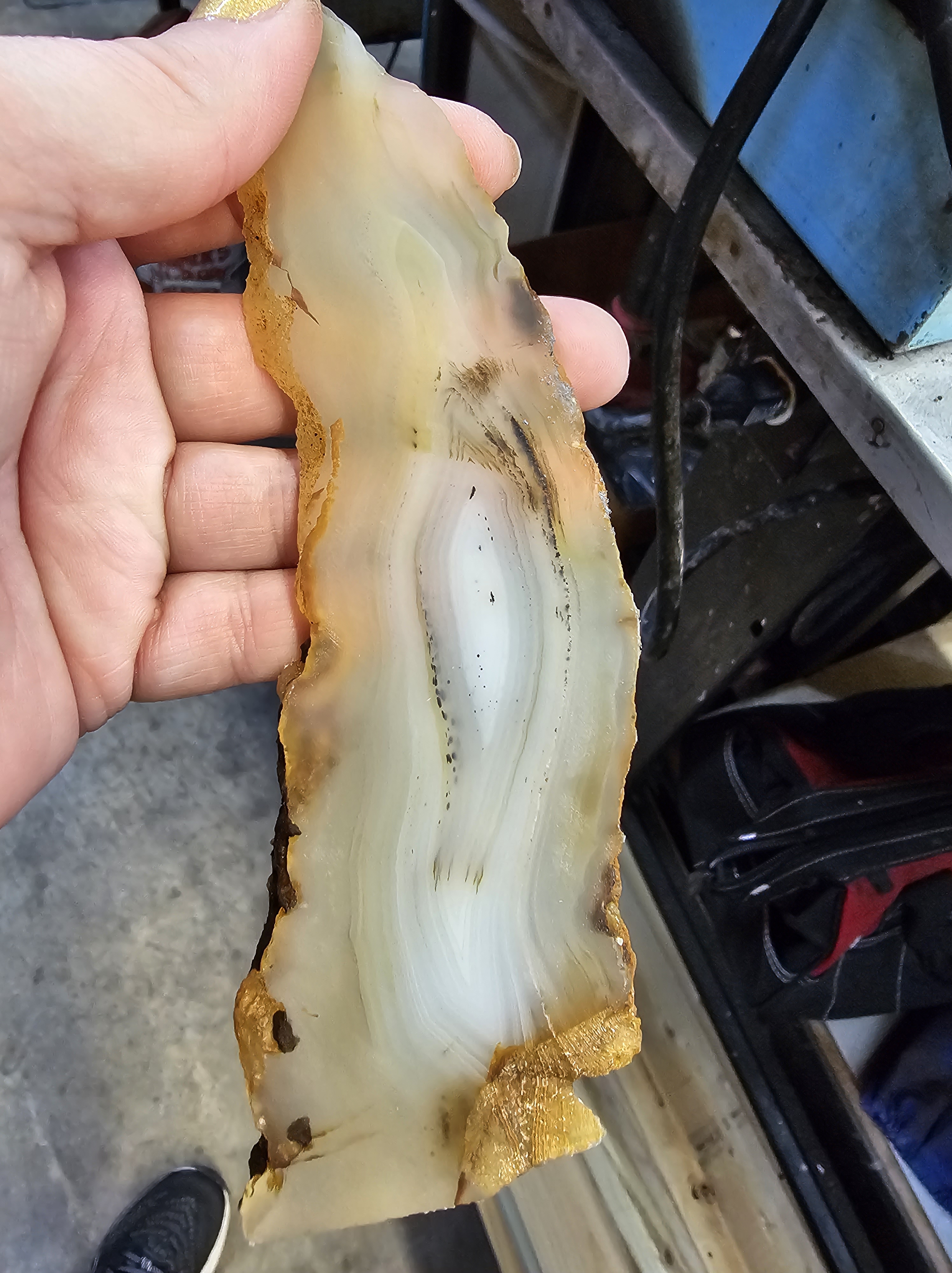 First off, yes, I have been out rock hounding. I’ve been teaching myself to wire wrap stones for necklaces. I’ve taken a few classes at my local rock and mineral society to learn how to cut my rocks into slabs and then to turn those slabs into cabochons, which by the way is really fun to see what’s just under the surface of the rocks as I polish them down. And the newest development is making the leap and deciding to make a serious go at starting my own business cutting slabs, creating cabochons and making jewelry.